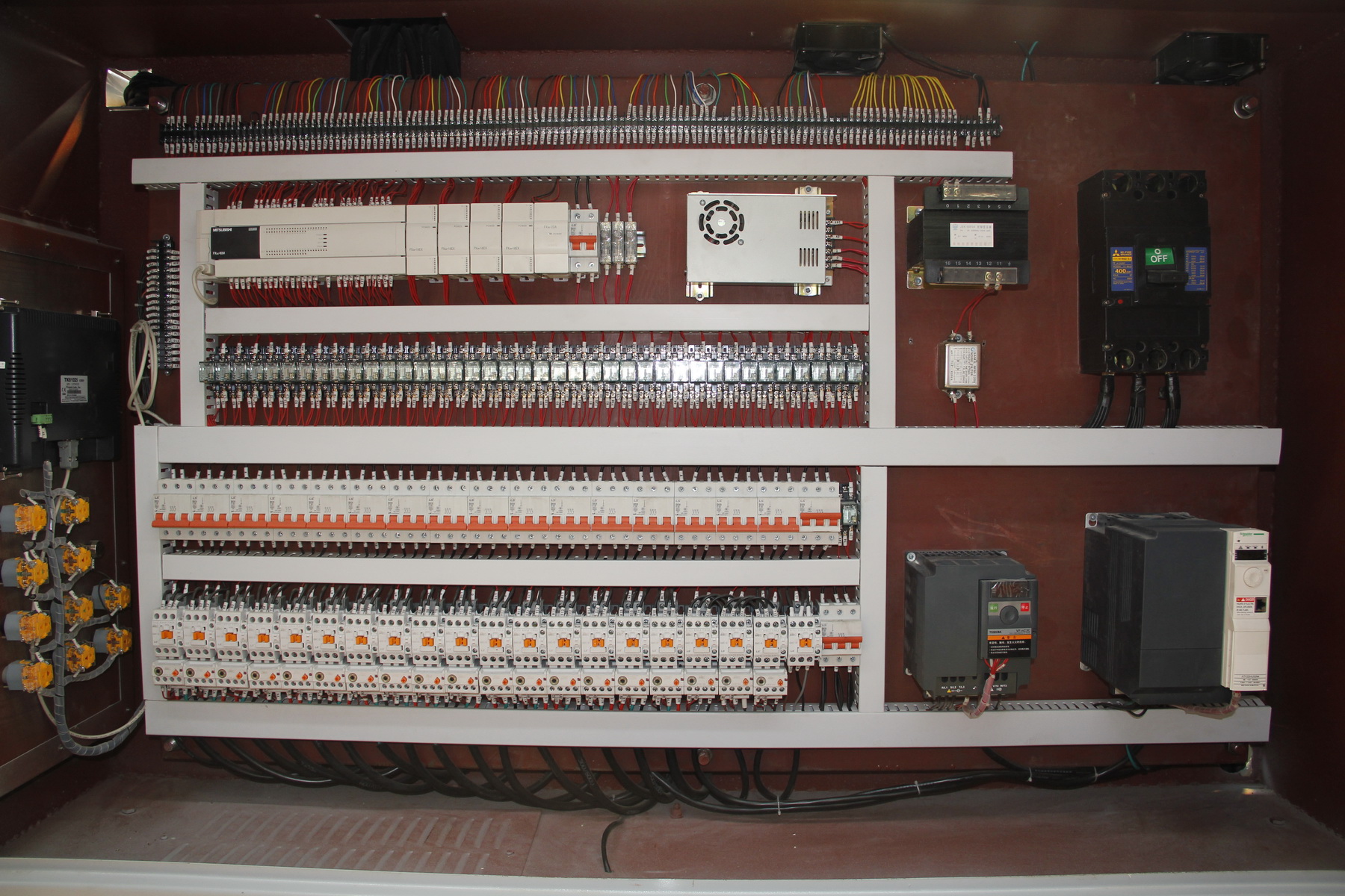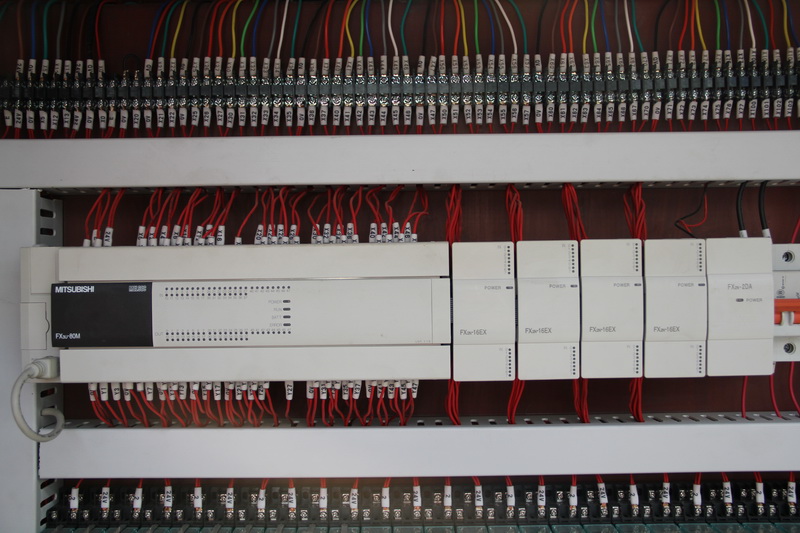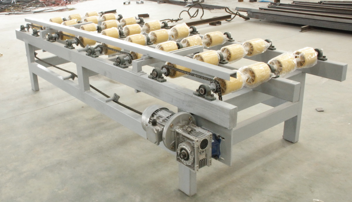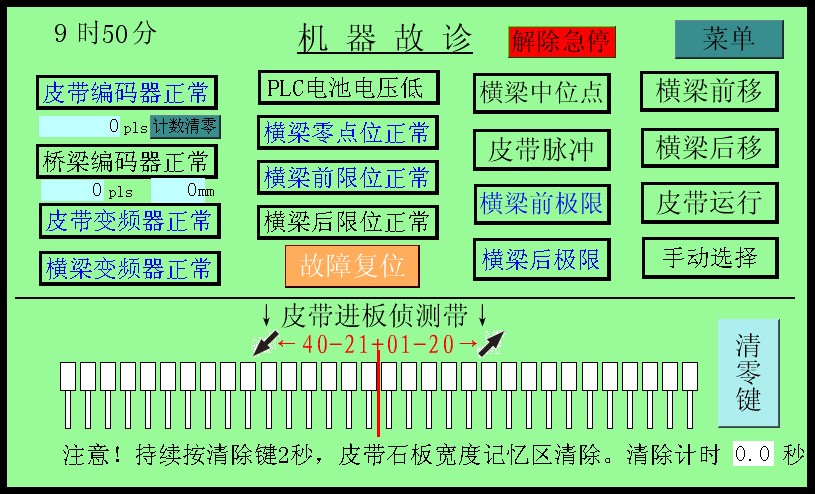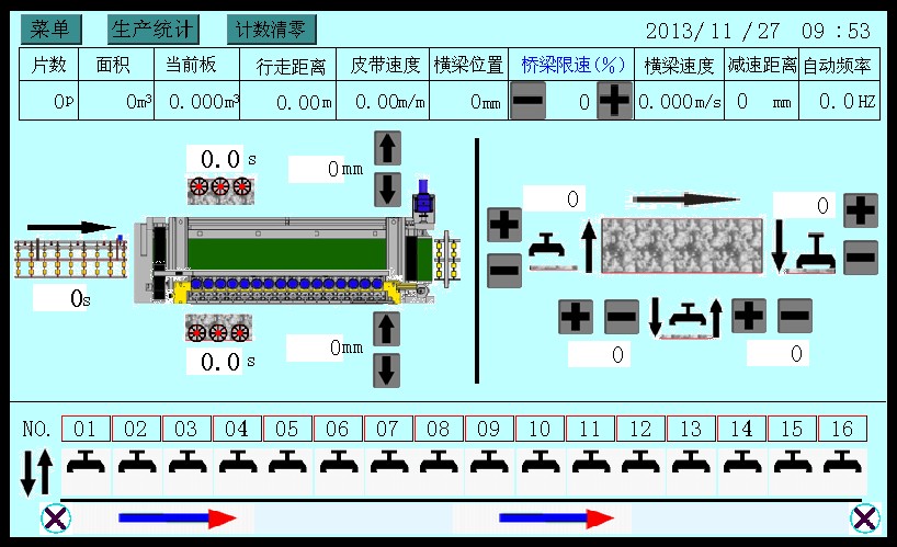 ? ??3.該機控制系統采用PLC終端控制,以液晶顯示觸摸屏終端為人機界面進行參數設定,設備運行過程中設有故障提示等等。該機適用于花崗石條板的連續磨削及拋光。板材輸送帶、磨盤橫移梁的工作速度均為變頻器調速;磨盤工作壓力、板材的磨削寬度在設定值范圍內可調。本機可對板材形狀自動識別,每個磨盤(磨頭)可根據識別板材的形狀自動升降,同時對板材磨削進行跟蹤記錄。整機均按標準化生產,性能穩定、故障率低等優點。